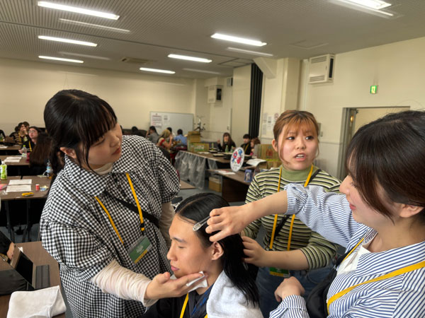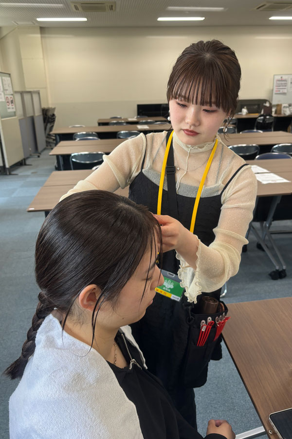 プロのヘアメイクの方から指導をいただきながら