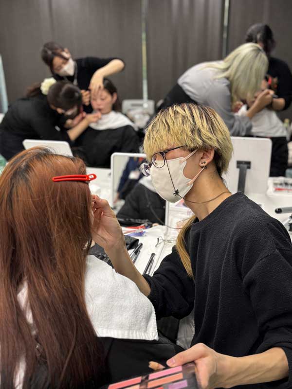 ヘアメイクを任せていただき、学生たちはショーの