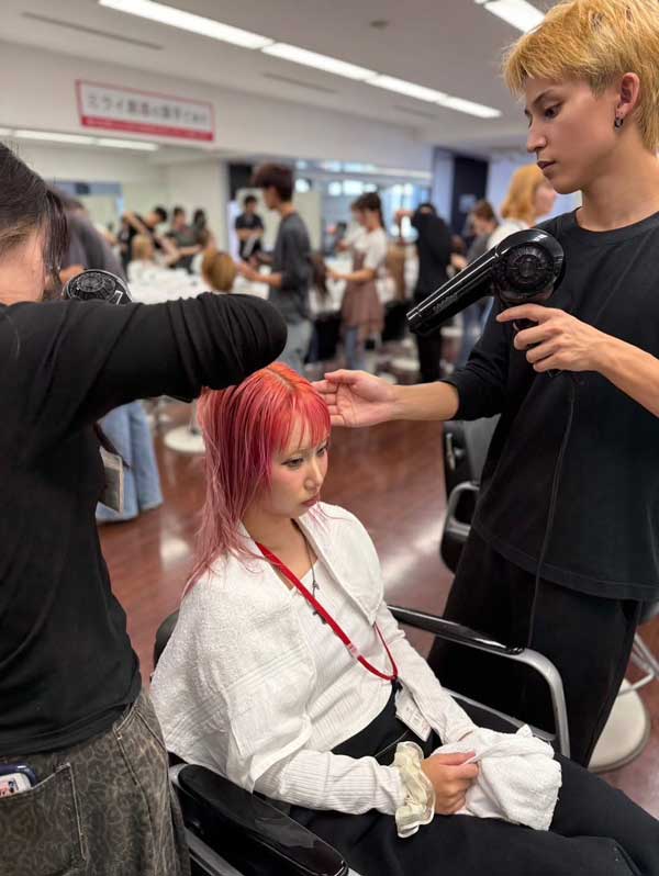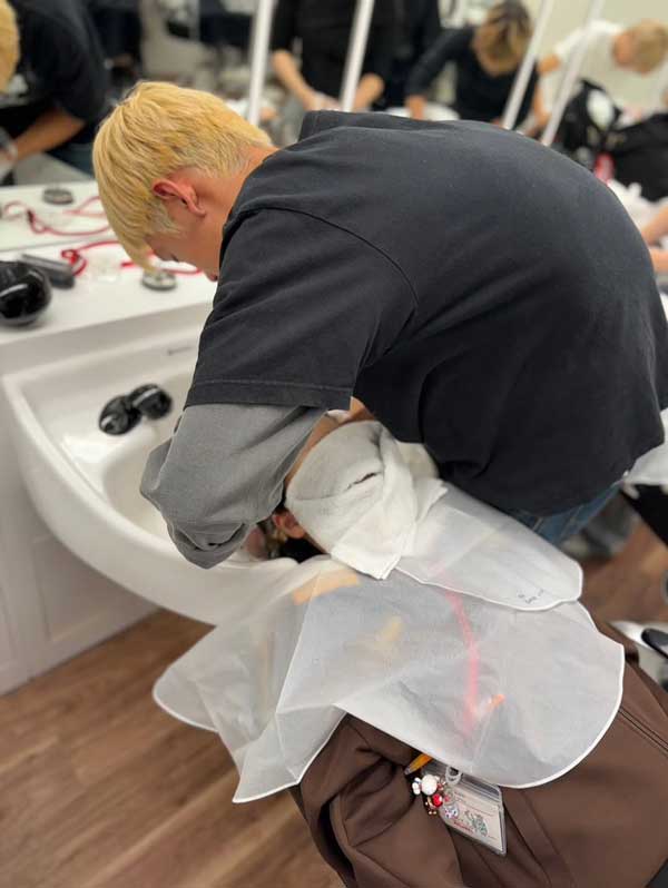 「サイドシャンプー」を学生たちが熱心に練習していました。